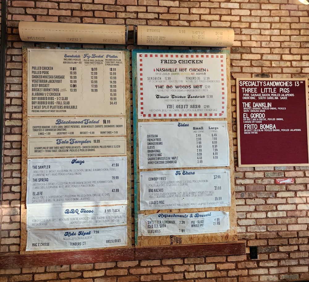 Enough for 2-3. Brisket, Pulled Pork, Pulled Smoked Chicken, Mikeska Sausage and an Alabama Half Chicken. Served with pickles, pickled onions, 2 cornbread, 2 Texas toast, and your choice of 3 sides.